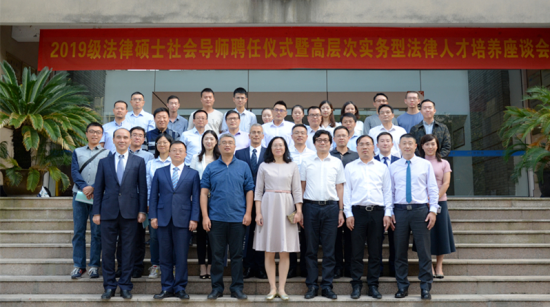 2019年10月10日,我院举行2019级法律硕士社会导师聘任仪式暨高层次实务型法律人才培养座谈会。70200app永利朱丹书记、李伟副院长、法学专业各学位点负责人,研究生导师代表,来自杭州市中级人民法院、衢州市人民检察院、丽水市人民检察院、浙江浙联律师事务所、国浩律师(杭州)事务所、浙江泽大律师事务所等实务部门的社会导师以及2019级法全体律硕士专业研究生共计50余人参加本次会议。本次聘任仪式和座谈会由我院法律硕士中心主任李海龙副教授主持。